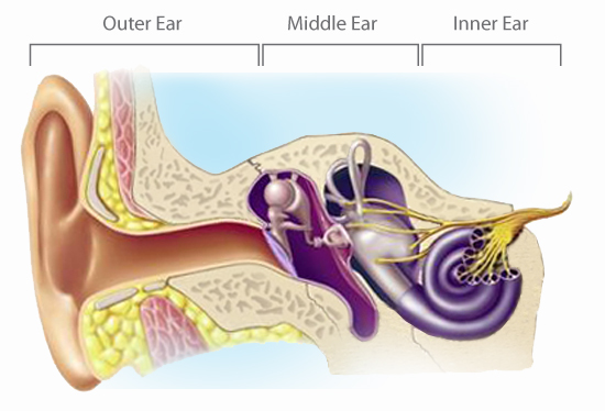 The outer portion of the ear is cupped so it can capture the sound vibrations in the air. The vibrations travel through the outer ear canal and collide with the eardrum. This causes the eardrum to vibrate.